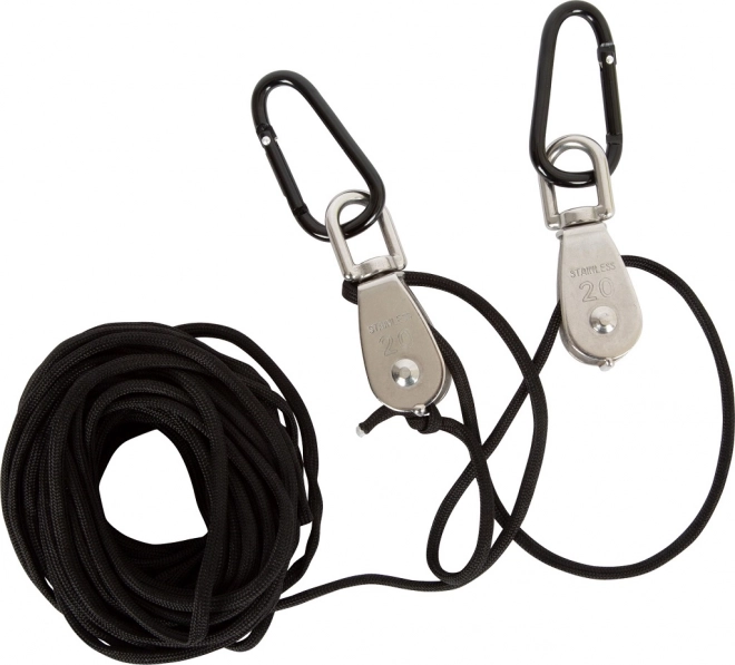 Dlhé a pevné lano umožní pohodlné zdvíhanie a spúšťanie nákladu z bezpečnej vzdialenosti, ideálne pre domčeky a preliezačky.