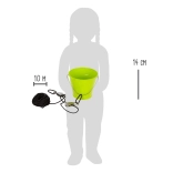Kovové uško bráni posúvaniu karabíny a udržiava vedro stabilné pri zdvíhaní – bezpečnejšia manipulácia pre deti.