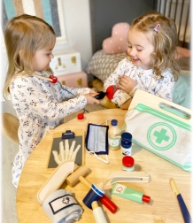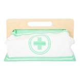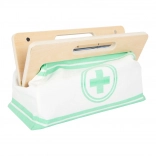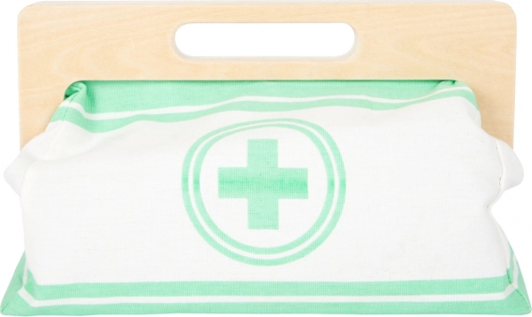 Táto starostlivo spracovaná lekárska sada kombinuje prírodné drevo a kvalitný textil do bezpečnej a zábavnej hračky pre deti od 3 rokov. Praktická brašňa s magnetickým zapínaním udrží všetky nástroje pokope a vďaka výraznému zelenému krížu je vždy ľahko na nájdenie.