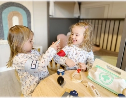 Od stetoskopu cez teplomer s nastaviteľnou teplotou až po tlakomer s manžetou a balónikom – deti majú po ruke všetko, čo potrebujú k malému vyšetreniu.