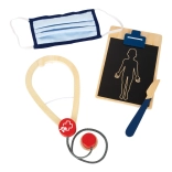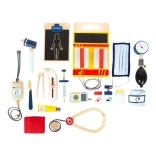 Tento záchranársky batoh je ideálny pre detskú hru na lekára. Vo vnútri nájdete drevené nástroje ako stetoskop, teplomer, otoskop s lupou a dokonca aj defibrilátor. Deti sa môžu naučiť rozpoznávať lekárske vybavenie a simulovať záchranárske postupy.