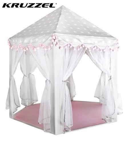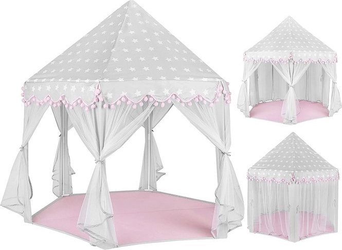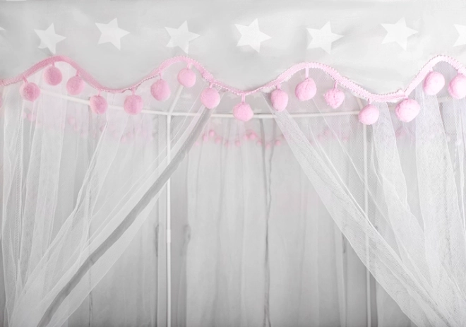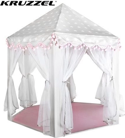Detský stan sivoružový Kruzzel so závesmi a pomponmi