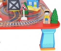 Drevená vlaková dráha s celkom 88 precízne vyrobenými prvkami, vrátane železnice, nákladného a osobného vlaku, automobilu, stromčekov a dopravných značiek. Zábava spočíva v možnosti vytvoriť si vlastnú trasu, zatiaľ čo magnetické spojenia jednotlivých častí zaisťujú jednoduchú obsluhu.
