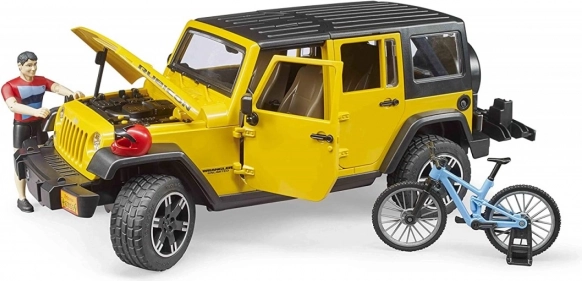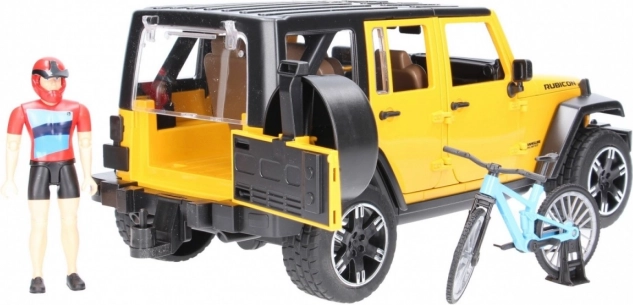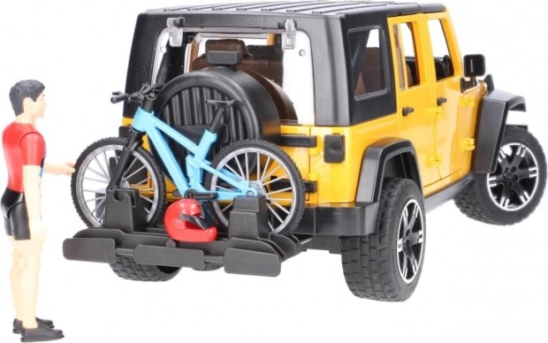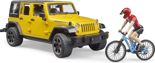 Bruder Jeep Wrangler Rubicon s cyklistom a bicyklom