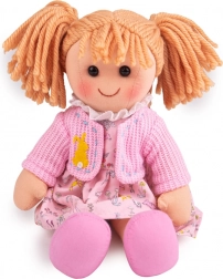 Ella, mäkká a maznavá bábika, má jarné ružové šatôčky, pletený svetrík s motívom králika a zladené ružové topánky, čo z nej robí rozkošnú spoločníčku pre každodenné hry. Jej oblečenie je ľahké zložiť a opäť obliecť, čo podporuje rozvoj jemnej motoriky a kreativitu.