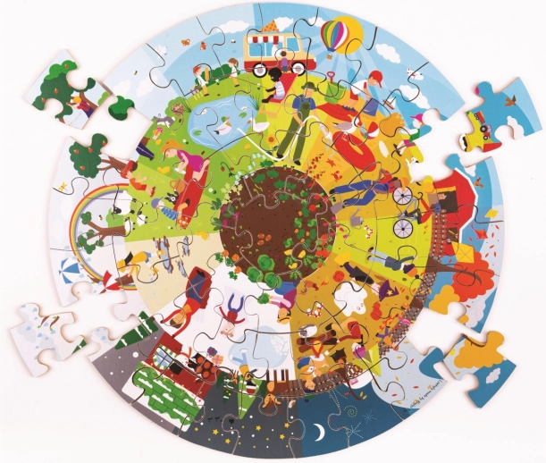 Detské okrúhle podlahové puzzle od Bigjigs Toys prinášajú jedinečný spôsob, ako sa deti môžu zoznámiť so sezónnymi zmenami. Každý dielik puzzle je precízne navrhnutý, aby vytváral celkovú 360-stupňovú scénu, predstavujúcu rôznorodé aktivity a krajiny typické pre jar, leto, jeseň a zimu.