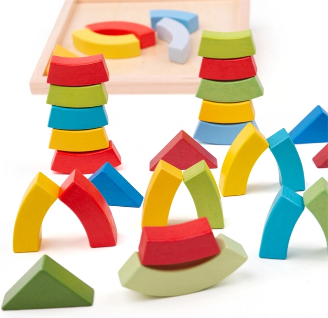 Drevené oblúky a trojuholníky BIGJIGS TOYS sú ideálne na voľnú hru. Deti môžu skladať, stavať a experimentovať s tvarmi aj rovnováhou, čím prirodzene rozvíjajú predstavivosť a logické myslenie. Praktická drevená základňa uľahčuje ukladanie aj prenášanie.