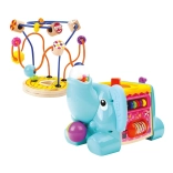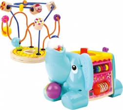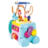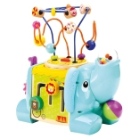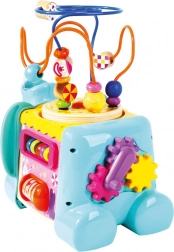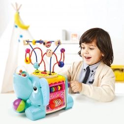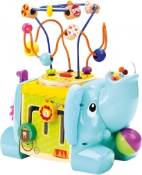 Táto viacfunkčná motorická kocka v tvare slona je ideálna edukačná hračka pre najmenších. Vďaka farebným prvkom a rozmanitým aktivitám deti prirodzene trénujú jemnú motoriku, priestorové vnímanie a senzorické zručnosti. Vrchnú časť tvorí motorický labyrint s korálikmi, boky zdobia ozubené kolieska, posuvné dieliky a ďalšie chytré úlohy.