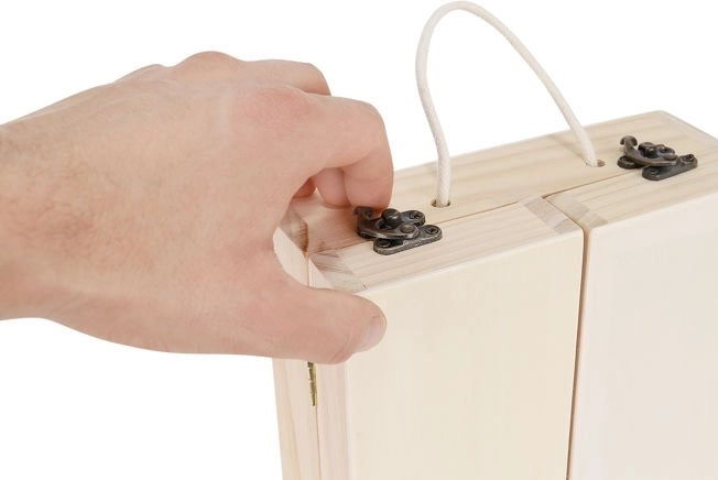Vo vnútri dreveného puzdra sa nachádza množstvo oddielov, v ktorých môže batoľa usporiadať príslušenstvo. Je vybavené špeciálnymi uzávermi, ktoré umožňujú dieťaťu nosiť hračku bez obáv zo straty alebo pádu príslušenstva.