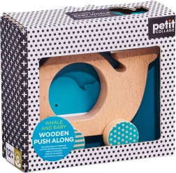 Táto štýlová a bezpečná drevená hračka prináša deťom radosť z pohybu aj objavovania. Zaoblené tvary sa skvele držia v malých rúčkach, uprostred tela veľryby je otvor s voľne uloženou figúrkou mláďaťa, ktorá podnecuje k interaktívnej hre a zlepšuje koordináciu oko–ruka.