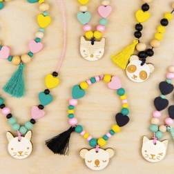 Tento kreatívny set poteší všetkých malých dizajnérov šperkov. Vďaka bohatej výbave môžu deti ľahko kombinovať drevené koráliky, srdiečka, strapce a prívesky so zvieratkami a vytvárať tak jedinečné doplnky presne podľa svojej fantázie. Súčasťou je aj prehľadný návod, takže tvorenie je jednoduché a zábavné.