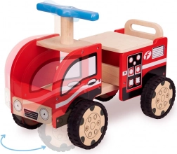 Drevené odrážadlo v tvare hasičského auta s reálnymi detailami podporí zábavu a inšpiruje k imaginatívnej hre.