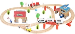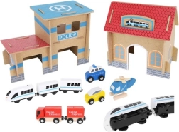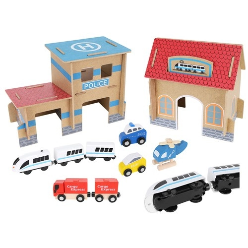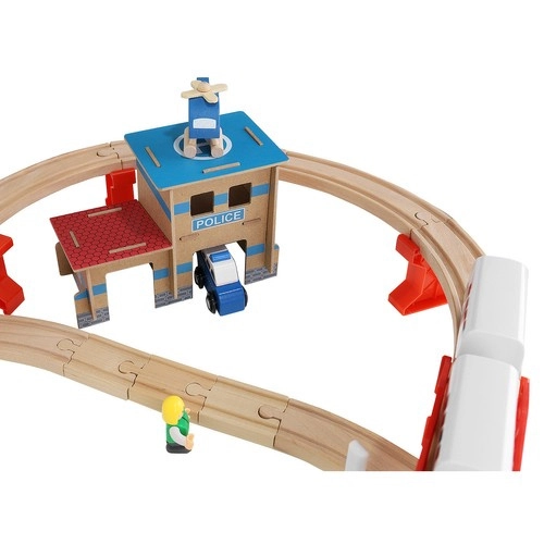 - Kompletný set s 89 dielmi – zahŕňa trate, vlak, 2 autá, policajný vrtuľník, nákladné vozidlo, stanicu a ďalšie príslušenstvo.