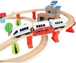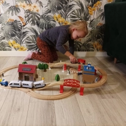 Drevená vláčiková dráha je perfektnou hračkou pre rozvoj kreativity a predstavivosti detí. Tento set umožňuje deťom navrhnúť a postaviť si vlastné trate a krajinu, čo je skvelá zábava pre všetkých. Testovanie vlastnoručne vytvorených tratí prinesie deťom veľa radosti.