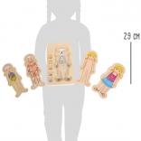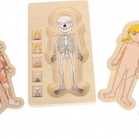 Drevené vrstvené puzzle anatómie je ideálna edukačná hračka pre deti od 3 rokov. Vďaka štyrom postupným vrstvám sa deti naučia, ako vyzerá ľudské telo – od skeletu, cez orgány a svaly až po oblečenie. Každá vrstva sa skladá zo 7 dielikov, ktoré do seba presne zapadajú a motivujú k opakovanému skladaniu.