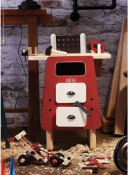 Vilac Môj pracovný ponk je navrhnutý tak, aby deti mohli bezpečne experimentovať a rozvíjať svoje mechanické zručnosti. Vďaka suchému zipsu môžu deti „rezať“ drevo, kladivom zatĺkať drevené klince a s pomocou skrutkovača a kľúča montovať a demontovať rôzne diely. Táto hračka povzbudzuje predstavivosť, trpezlivosť a vynaliezavosť.