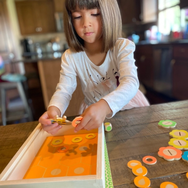 Táto hra je ideálna pre deti od 3 rokov, ktoré si chcú hravou formou osvojiť význam včiel v našom ekosystéme. Hráči hádžu kockou, hľadajú zhodu farieb a tým pomáhajú včelám zbierať nektár. Celé herné balenie je vyrobené z odolnej preglejky a recyklovaného papiera, čo zaručuje ekologický prístup.