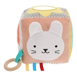 Mäkká a jemná textilná kocka od značky Petit Collage stimuluje hmat a zvedavosť tých najmenších. Stimulácia všetkých zmyslov je zabezpečená vďaka kontrastným farbám, rolničke, zrkadielku a rôznym textúram.