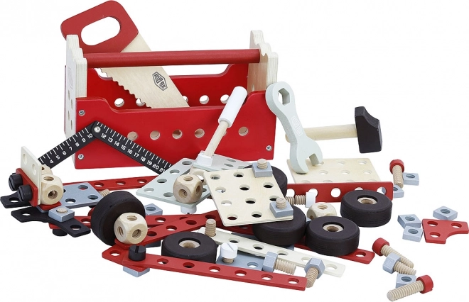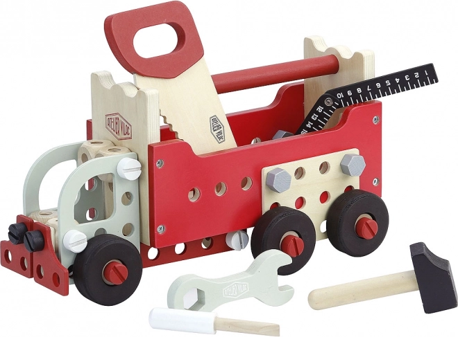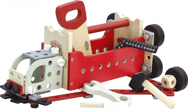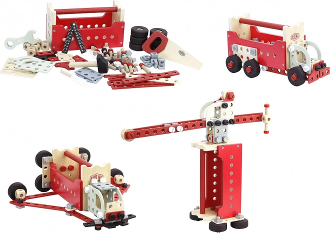 Sada je vyrobená prevažne z kvalitného dreva a obsahuje odolné komponenty, ktoré zaručujú dlhú životnosť hračiek.
