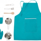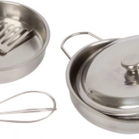 Rozsiahla súprava na varenie obsahuje hrniec s pokrievkou, panvicu, metličku, špachtľu a drevenú varechu. Súčasťou je tiež detská zástera, podložka pod hrniec a textilná rukavica. Ideálne príslušenstvo pre kreatívnu hru v detskej kuchynke.