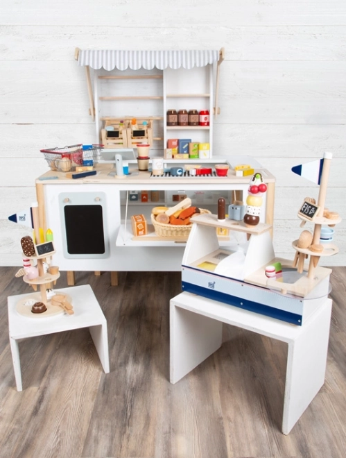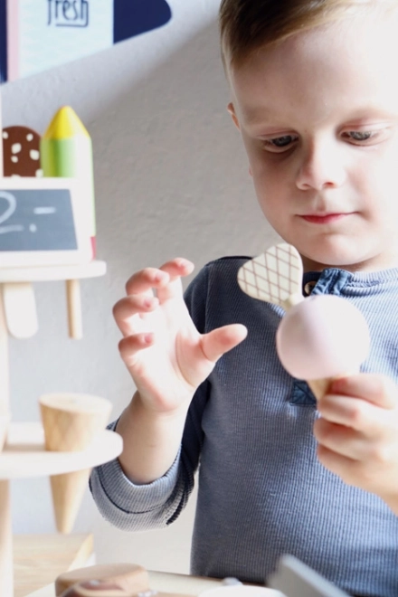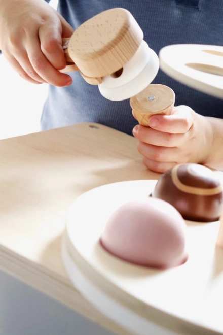 Drevený stojan na zmrzlinu Fresh je perfektná hračka pre malých predajcov. Ponúka rôzne zmrzlinové pochúťky a magnetickú naberačku, ktorá zaručuje bezpečné a ľahké použitie. Svojím prírodným vzhľadom podnecuje imaginatívnu hru.