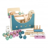 Táto drevená debnička s náradím je ideálna pre deti, ktoré chcú napodobňovať skutočné opravy a remeselnú prácu. Jednoduchý škandinávsky dizajn v jemných pastelových farbách sa skvele hodí k akémukoľvek detskému izbe: