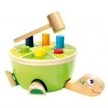 Zábavná drevená zatĺkačka v tvare korytnačky, ktorá rozvíja detskú jemnú motoriku, koordináciu ruka–oko a sústredenie. Farebné kolíčky sa zatĺkajú do panciera pomocou kladivka s plsteným povrchom pre tichšiu hru, pričom korytnačke „ožívajú“ nohy a hlava – skvelý spôsob, ako podporiť zvedavosť a radosť z objavovania.