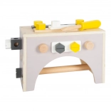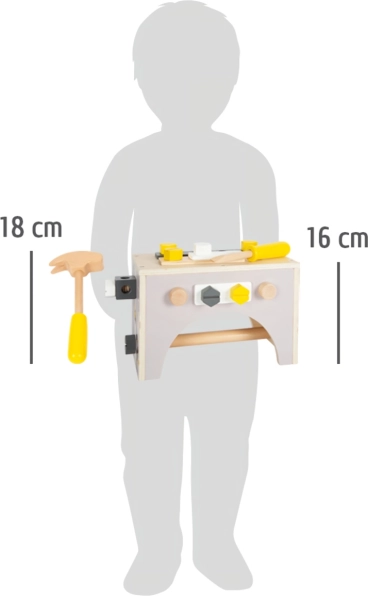 Objavte šikovnú hračku 2v1: po otočení sa debnička premení na pracovnú dosku, na ktorej môžu malí kutilovia skrutkovať, uťahovať a stavať. Prírodné drevo v kombinácii so žltými a sivými akcentmi prináša nadčasový vzhľad a dlhú životnosť.