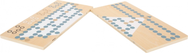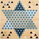 Objavte obojstrannú drevenú hru small foot Gold Edition, ktorá spája klasické stratégie Halma a Bariéry (Malefiz) v elegantnom prevedení so zlatými detailmi, dymovo modrou, čiernou, bielou a prírodným drevom. Magneticky spojená dvojdielna doska zaistí stabilitu a jednoduché skladovanie v odolnom boxe. Skvelá voľba pre rodinnú zábavu, rozvoj strategického myslenia a sústredenia.