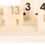 - drevené číselné dieliky, žolíky, drevené stojany, kartónový box
