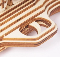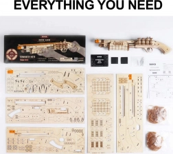 Zaobstarajte si unikátnu stavebnicu, ktorá kombinuje vzdelávanie a zábavu v podobe drevenej mechanickej brokovnice. Môžete sa tešiť na precízne detaily a funkčné komponenty, ktoré vám umožnia strieľať gumenými nábojmi na drevené figúrky. Tento model je dokonalou kombináciou dizajnu a mechaniky, ktorá nadchne každého modelára.