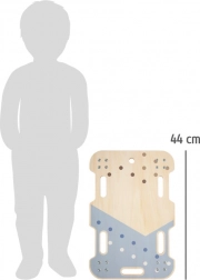 Drevená balančná doska Adventure je ideálna pre malé deti, ktoré túžia po aktívnom pohybe. Vďaka otvoru na lano a bočným kolieskam je manévrovanie jednoduché, pričom ochrana okolo otvorov chráni ruky. Doska je perfektná do každej detskej izby so svojou jednoduchou a prírodnou úpravou.