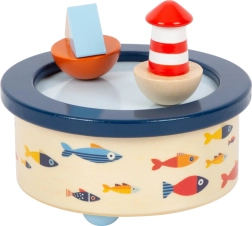 Kúzelná drevená hudobná skrinka s námorným motívom, ktorá deti uspí nemeckou uspávankou. Navrchu sa v rytme melódie otáčajú maják a loďka, ktoré držia na mieste pomocou magnetu. Bezpečné zaoblené hrany, príjemný drevený materiál a kvalitná potlač v moderných farbách z nej robia ideálny doplnok do detskej izbičky.
