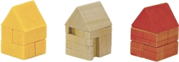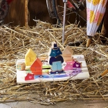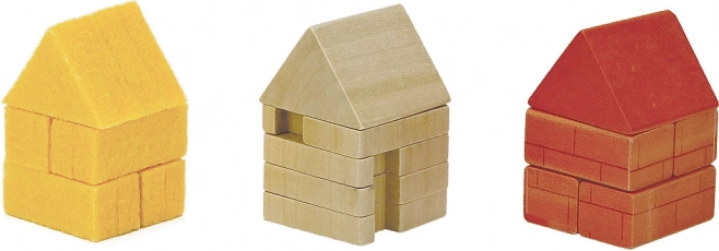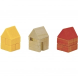 Robustné drevené dieliky a farebné tvary lákajú k stavaniu domčekov a skladaniu vlka. Deti si prirodzene rozvíjajú jemnú motoriku a fantáziu.