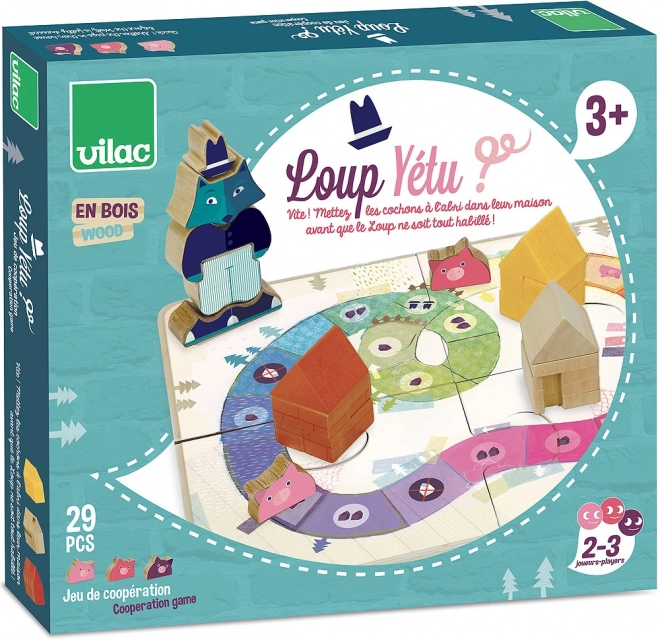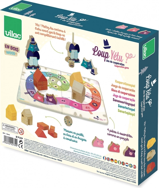 Obľúbená rozprávková kooperatívna hra od značky Vilac, v ktorej tri prasiatka súťažia s vlkom o stavbu slamenej, drevenej a tehlovej chalúpky. Deti si precvičia spoluprácu, logiku a jemnú motoriku pri skladaní drevených dielikov a hádzaní kockou. Ideálna prvá rodinná hra pre deti od 3 rokov.