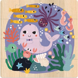 Objavte nádherný svet prírody prostredníctvom tejto sady drevených puzzlí. Každý z troch obrázkov zobrazuje inú tematiku: hráča medzi oblakmi, podmorský svet a dobrodružstvo v džungli. Scéna na oblohe poteší krásnym pávom, orlom a ďalšími vtákmi. Morské motívy oživujú veľká veľryba, chobotnica a priateľské rybičky. Pozemská scéna zahŕňa tigra, krokodíla a papagája vo veselom prostredí džungle.