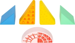 Pri stavaní veží, mostov a fantazijných miest si malí stavitelia precvičia koordináciu pohybov, trpezlivosť aj priestorovú predstavivosť. Hladké povrchy, sýte farby a rozmanité tvary lákajú k opakovanej hre a podporujú samostatnosť aj zmyslový rozvoj.