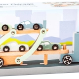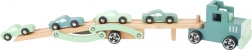 Sada obsahuje kamión s návesom a celkovo štyri športové autíčka. Hra rozvíja koordináciu oko–ruka, jemnú motoriku aj kreatívne rozprávanie príbehov. Vďaka kvalitným materiálom a hladko opracovaným hranám je hračka vhodná pre deti od 3 rokov.