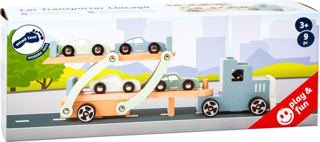 Objavte robustný drevený kamión s návesom Chicago od small foot, ktorý prevezie až štyri autíčka a nadchne deti od 3 rokov. Vďaka sklopnej hornej palube a nakladacej rampe je hranie plynulé a zábavné. Celodrevené prevedenie zaisťuje dlhú životnosť a bezpečný herný zážitok. Stabilná drevená konštrukcia, sklopný náves pre 4 autá a podpora jemnej motoriky a predstavivosti robia z tohto transportéra ideálnu hračku do detskej izby.