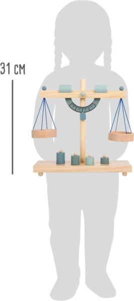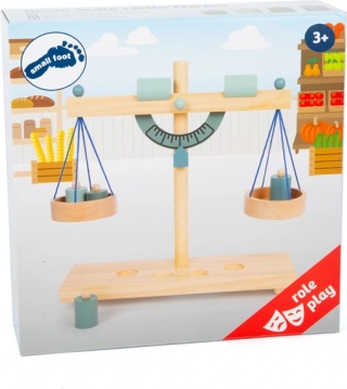 Pri obsluhe „zákazníkov“ sa deti učia komunikácii, spolupráci a spravodlivej výmene. Vďaka kvalitnému drevu s prírodným vzhľadom a príjemným sivo-modrým tónom je váha nielen odolná, ale aj esteticky lákavá a bezpečná pre detské ruky.