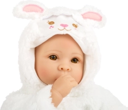 Súčasťou sady je hebký plyšový overal, mäkkučká deka a cumlík – všetko ladené do jemných farieb pre upokojujúci efekt. Bábika je skvelá na rozvoj jemnej motoriky, empatie a rolových hier detí od 2 rokov.