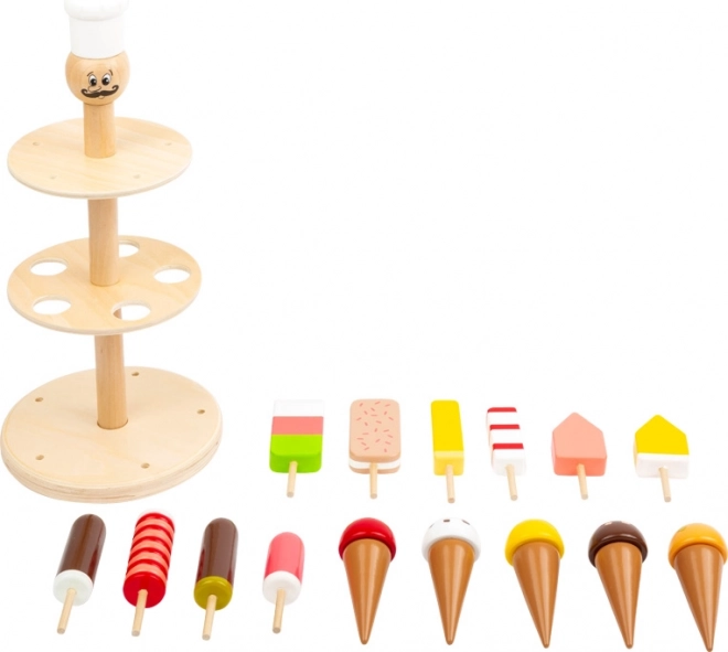- Drevený zmrzlinový stojan s výberom zmrzlinových dielikov (kopčeky a nanuky)