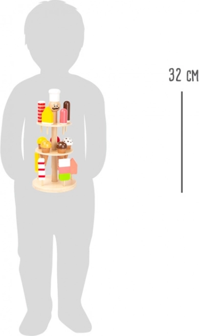 Tento láskyplne navrhnutý zmrzlinový stánok z masívneho dreva splní všetky zmrzlinové priania. Deti si môžu vyberať medzi nanukmi a kopčekovou zmrzlinou vo vaflovom kornútku a zostaviť si vlastnú vitrínu plnú farebných pochúťok. Vďaka stabilnej konštrukcii je ideálny do detského obchodu, kuchynky alebo kaviarničky.
