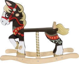 Hojdací kôň prirodzene rozvíja hrubú motoriku, koordináciu a rovnováhu, zároveň podporuje imaginatívnu hru. Je genderovo neutrálne ladený, ručne domalovaný ekologickými, netoxickými farbami a vyrobený z udržateľného dreva.