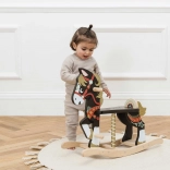 Doprajte deťom nadčasovú radosť s dreveným hojdacím koníkom z kolekcie Petilou. Robustná konštrukcia, hladké hrany, opieracie madlá a pohodlné sedlo zaisťujú bezpečie aj pohodlie pri jazde. Elegantný dekor s hnedými a zlatými akcentmi ozdobí každú detskú izbičku.