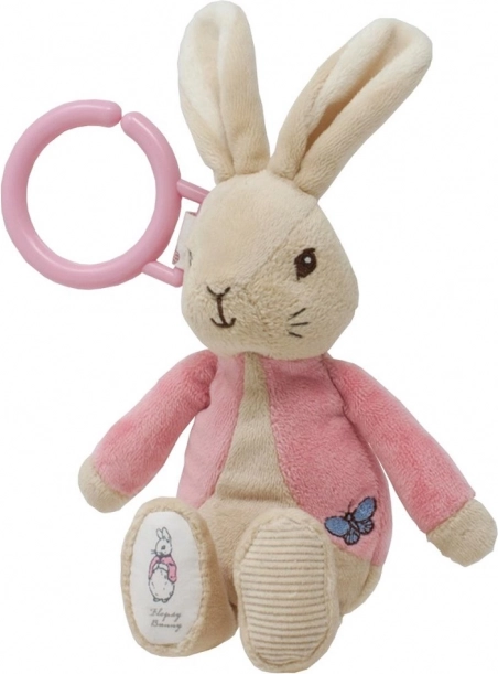 Tento plyšový zajačik Flopsy je ideálna hračka pre deti od narodenia. Je navrhnutý s ohľadom na bezpečnosť a zábavu detí. Flopsy sa ľahko pripevňuje pomocou ružového plastového krúžku k akémukoľvek kočíku, autosedačke alebo postieľke, čo ho robí skvelým spoločenstvom na cesty.