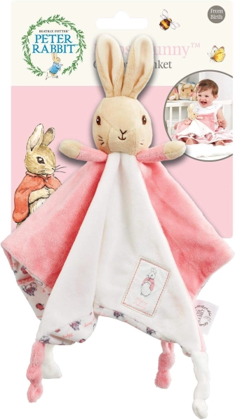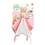Farby a vzory králíčka stimulujú vývoj detských zmyslov, zatiaľ čo uzlík na rohu dečky je ideálny na hryzenie.