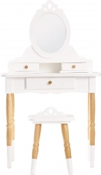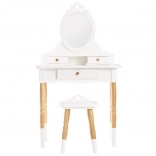 Krásny toaletný stolík v retro štýle určite naplní sny nejedného dieťaťa. Vynikne v detskej izbe alebo herni, je veľmi elegantný a pri hre naozaj upúta pozornosť detí. Viktoriánske oválne zrkadlo z prvotriedneho, nerozbitného akrylátu, dvojposchodový stolík, 3 zásuvky – perfektné na ukrytie pokladov a drobností. Vyrobené tímom talentovaných hračkárov s použitím udržateľného kaučukového dreva, krásny kúsok je zhotovený s dôrazom na detaily. Stôl aj stolička majú nohy zaujímavého tvaru. Kombinácia bielej a prírodného dreva pre nadčasový vzhľad. Krásny nábytok si môžete odovzdávať z generácie na generáciu. Hlavné vlastnosti: toaletný stolík so stoličkou pre deti od 3 do 6 rokov maximálna nosnosť 50 kg vyrobené eticky z udržateľného dreva maľované netoxickými farbami na báze vody Ocenenie hračky: Independent Toy Gold Award Winner 2022 Kolekcia Honeybake: Hračky v tejto kolekcii sú vhodné na objavovanie, pomôžu deťom s rozvojom predstavivosti, sociálnych a verbálnych zručností a kognitívnych funkcií. Tradičný dizajn s modernými detailmi bude deti určite baviť. Honeybake je kolekcia Le Toy Van, ktorá získala najviac ocenení – za dizajn, kvalitu, bezpečnosť a tiež za vzdelávaciu a hernú hodnotu.