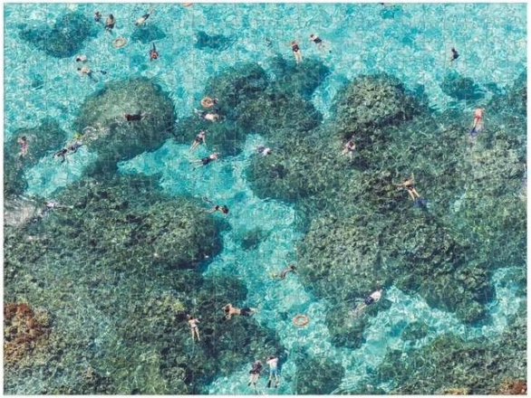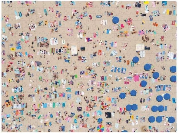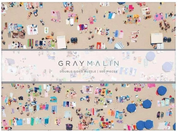 Štýlové obojstranné puzzle inšpirované ikonickými leteckými fotografiami Gray Malin prináša atraktívnu výzvu a zároveň dekoratívny výsledok. Jedna strana zachytáva rušnú pláž z vtáčej perspektívy, druhá pokojnú hladinu oceánu so skaliskami a plavcami. Vďaka rozdielnej povrchovej úprave (lesk/mat) ľahko spoznáte, ktorú stranu práve skladáte.