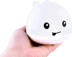 Táto veselá kúpacia hračka sa sama zapne po ponorení do vody a vyčarí vodnú fontánku sprevádzanú pestrými svetelnými efektmi. Hladký povrch a prívetivý dizajn sú ideálne pre malé deti, ktoré si kúpeľ okamžite zamilujú.